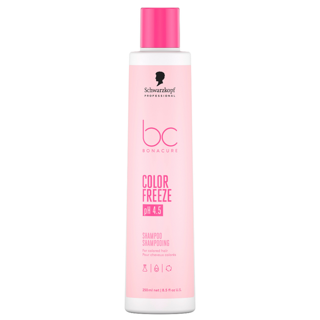 Dieses milde Shampoo von Bonacure Color Freeze wurde speziell für gefärbtes Haar entwickelt. Die einzigartige Formel stellt den optimalen pH-Wert wieder her, versiegelt die Farbpigmente in der Haarmatrix und verhindert das Verblassen. Dieses vegane Haarprodukt ist ideal nach einer Farbbehandlung und für die Pflege zu Hause. Frei von SLS/SLES-Sulfaten, Silikonen und künstlichen Farbstoffen.