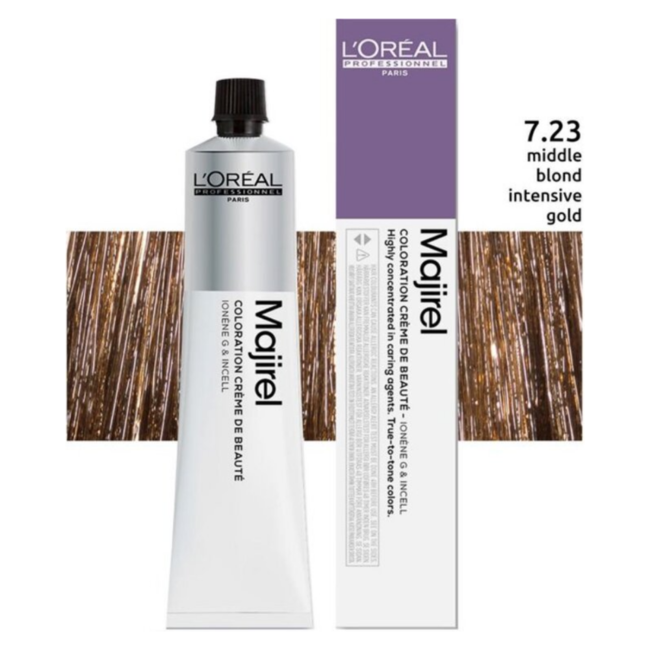Le L’Oréal Professionnel - Majirel Absolu 50 ML 7.23 est une coloration capillaire de haute qualité qui offre une couleur magnifique et durable. Cette coloration capillaire a été spécialement développée par L’Oréal Professionnel et propose une large gamme de couleurs pour répondre aux différents besoins de coloration des cheveux. La formule est enrichie en Ionène G et en Incell, ce qui protège et renforce les cheveux pendant le processus de coloration. Les résultats de couleur sont vibrants, intenses et brillants, et durent longtemps.