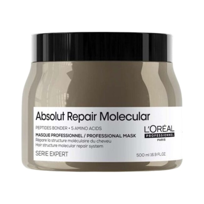 L'Oréal Professionnel - Absolut Repair Molecular - Shampooing 500 ML offre un renforcement intensif et une réparation pour les cheveux abîmés. Ce shampooing professionnel est spécialement formulé avec des peptides bonders et 5 acides aminés pour restaurer la structure macromoléculaire des cheveux. Sa formule luxueuse nettoie en profondeur, démêle efficacement et assure un soin intensif. Après utilisation, les cheveux se sentent plus forts, avec une élasticité et une souplesse améliorées.