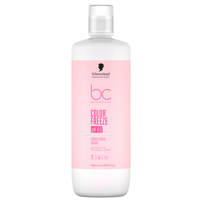Cet après-shampooing doux de Bonacure Color Freeze est spécialement développé pour les cheveux poreux et colorés. La formule sans silicones ni colorants artificiels rend les cheveux plus faciles à coiffer et aide au démêlage. De plus, elle rétablit la valeur de pH optimale, scellant les pigments de couleur dans la matrice capillaire et empêchant la décoloration. Ce produit capillaire végan assure une couleur de cheveux éclatante et durable.