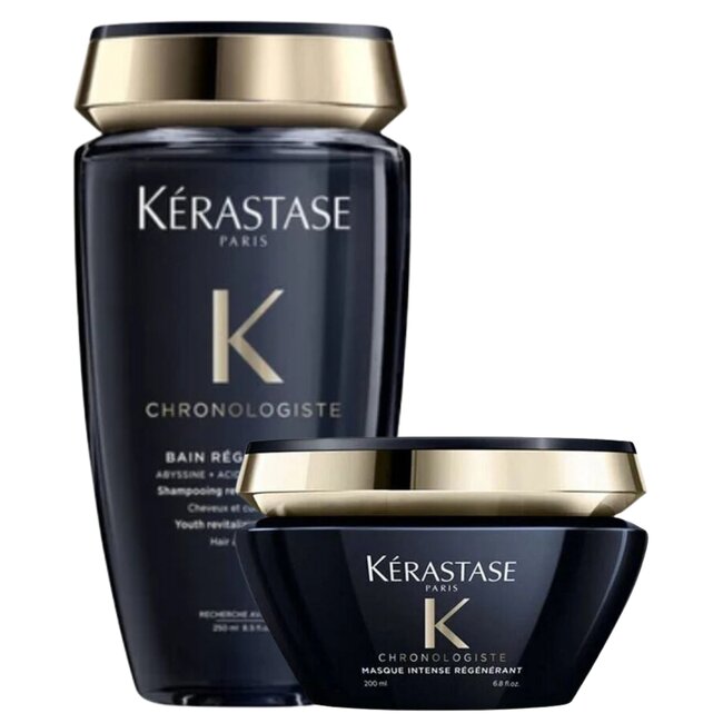 Deze CombiDeal voor dof haar van Kérastase Chronologiste is perfect om vermoeid haar nieuw leven in te blazen. De set bevat een Bain Régénérant shampoo (250ML) en een Masque Régénérant masker (200ML). De shampoo reinigt grondig en bereidt het haar voor op de intensieve verzorging van het masker. Het masker voedt diep, herstelt de glans en versterkt de haarvezels. Het resultaat? Gezond, sterk en stralend haar. Ideaal voor wie op zoek is naar een complete verzorging voor dof en levenloos haar.